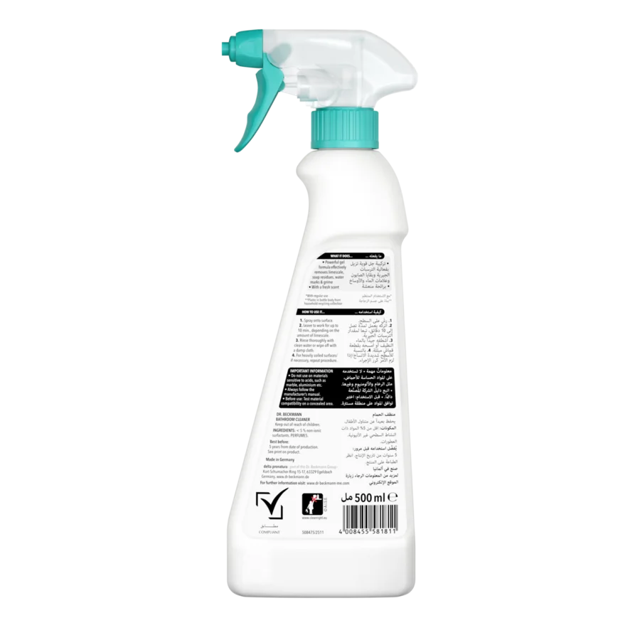 "مزيل الترسبات الكلسية من د. بيكمان" هو بخاخ جل سهل الاستخدام، يزيل الترسبات الكلسية وبقايا الصابون وآثار المياه والأوساخ العامة من جميع أنواع الأسطح بفعالية. فهو يلتصق بالسطح عند