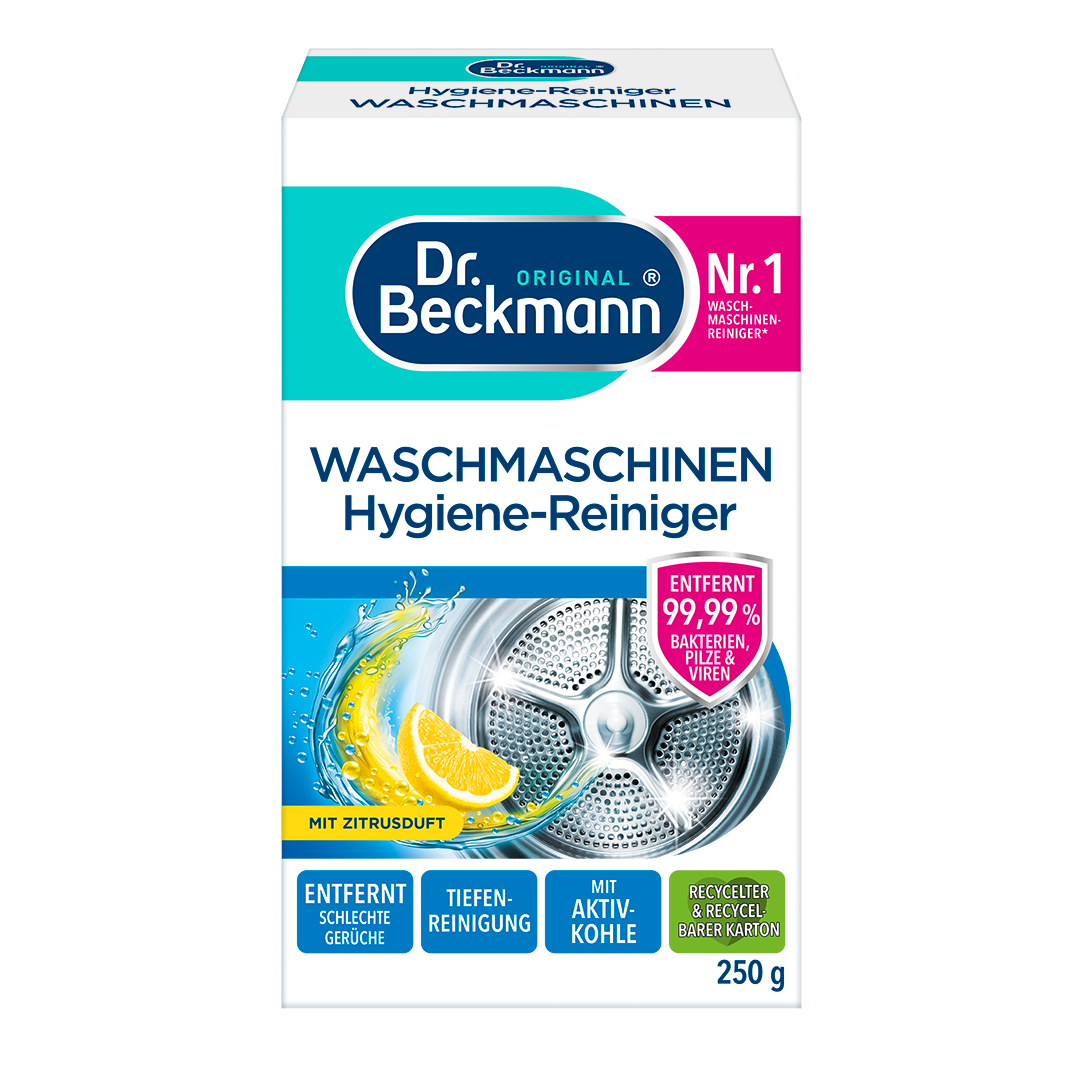 Gerade durch häufiges Waschen bei niedrigen Temperaturen können sich geruchsverursachende Rückstände in der Waschmaschine bilden. Zusammen mit der Feuchtigkeit ist dies der perfekte Nährboden für die Bildung von Bakterien, Pilzen und Schimmel. Dank seiner speziellen Formel mit Aktiv-Sauerstoff und Aktivkohle reinigt der Dr. Beckmann Waschmaschinen Hygiene-Reiniger tiefenrein und entfernt Schmutz und Rückstände vollständig. Er entfernt zuverlässig 99,99 % der Bakterien, Pilze und Viren in Ihrer Waschmaschine und beseitigt so unangenehme Gerüche. Nur mit einer sauberen Waschmaschine wird Ihre Wäsche frisch und sauber.