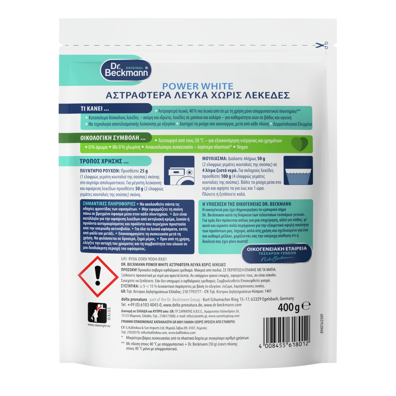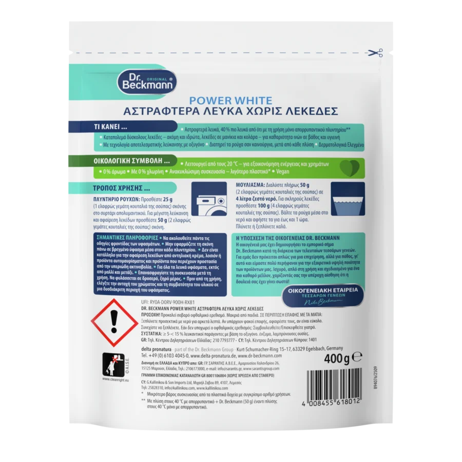 Dr. Beckmann Power White Αστραφτερα λευκό χωρίς λεκέδες