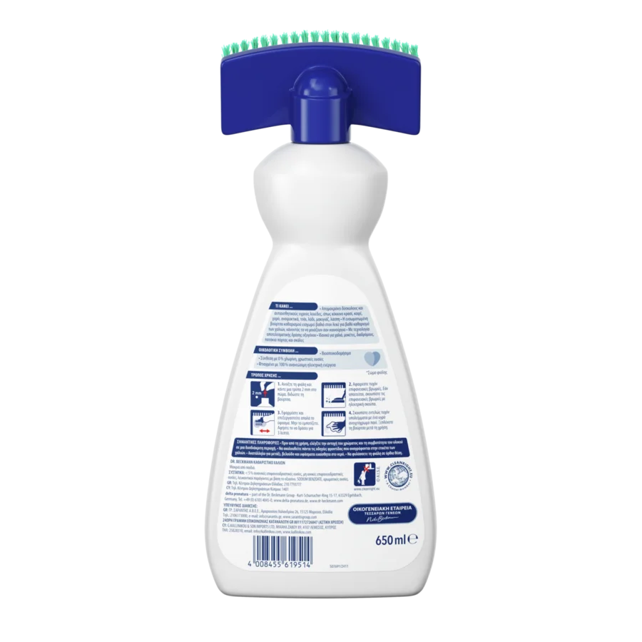Η ισχυρή καθαριστική φόρμουλα με βάση το οξυγόνο του Dr. Beckmann Καθαριστικό χαλιών εξαλείφει φρέσκους και παλιούς λεκέδες που έχουν στεγνώσει, καθώς και δυσάρεστες κηλίδες από κόκκινο κρασί, καφέ, χυμό, κόλα, τσάι, λίπος, μακιγιάζ, λάσπη και ακόμη και λεκέδες από κατοικίδια, όπως ούρα. Χάρη στην ενσωματωμένη βούρτσα 2 σε 1 που συνδυάζει σφουγγάρι και τρίχες, ο καθαρισμός είναι πιο εύκολος από ποτέ και μπορείτε να χρησιμοποιήσετε το προϊόν ακόμη και σε χώρους υψηλής επισκεψιμότητας, όπως διάδρομοι, είσοδοι και σκάλες. Ανεξάρτητα από τον τύπο της ακαθαρσίας, η βούρτσα εισχωρεί βαθιά στις ίνες και καθαρίζει επιμελώς το χαλί – για πραγματικά καθαρισμένες σε βάθος επιφάνειες που μοιάζουν σαν καινούργιες. Η σύνθεσή μας δεν περιέχει χλωρίνη και είναι δερματολογικά ελεγμένη.