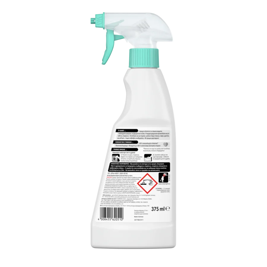 Το καθαριστικό φούρνου μας διαθέτει μια μοναδική σύνθεση σε μορφή τζελ και ένα εύχρηστο ακροφύσιο ψεκασμού. Σε αντίθεση με τα παραδοσιακά σπρέι σε μορφή αεροζόλ που απελευθερώνουν αφρό, το τζελ μας προσκολλάται στις επιφάνειες, εξασφαλίζοντας πιο ακριβή και αποτελεσματικό καθαρισμό. Αυτό σημαίνει ότι δεν δημιουργούνται ερεθιστικές αναθυμιάσεις ή νέφος ψεκασμού που κατά κανόνα συνδέονται με τα προϊόντα σε μορφή αερολύματος. Επιπλέον, η σύνθεσή μας αφήνει ένα αναζωογονητικό άρωμα γκρέιπφρουτ, καθιστώντας την εμπειρία καθαρισμού του φούρνου σας πιο ευχάριστη και απολαυστική. Το προϊόν είναι επίσης κατάλληλο για τον καθαρισμό σχαρών, τηγανιών, φριτέζων αέρος, ταψιών, σχαρών ψησίματος και γυάλινων τζαμιών τζακιού.