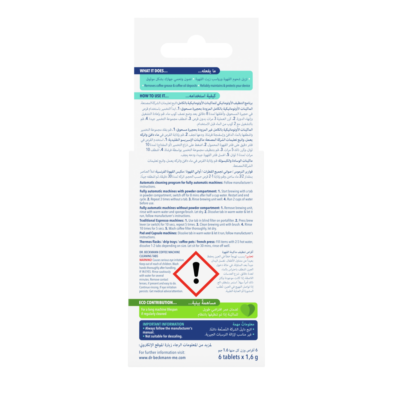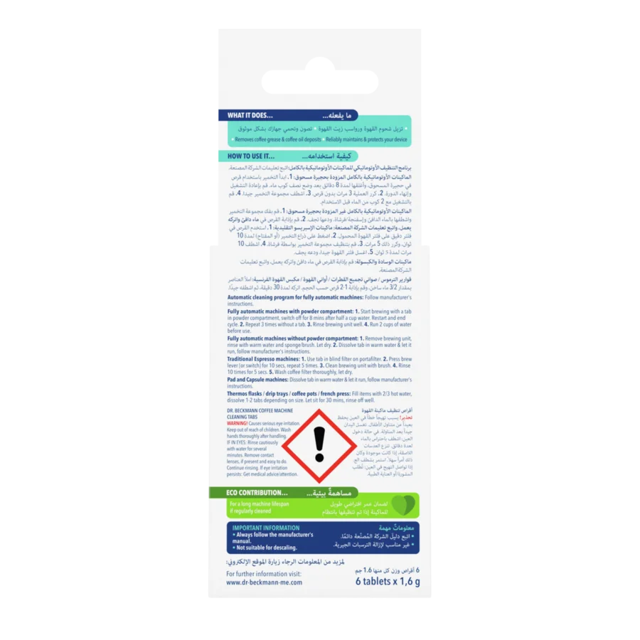 For perfect coffee enjoyment and a long service life of the coffee machine, it is important to clean the device regularly. This is because every time the coffee machine is used, coffee fats and oils are deposited, which can impair the functioning of the device. Dr. Beckmann Coffee Machine Cleaning Tabs remove any coffee grease residues and reliably protect your coffee machine in the process.