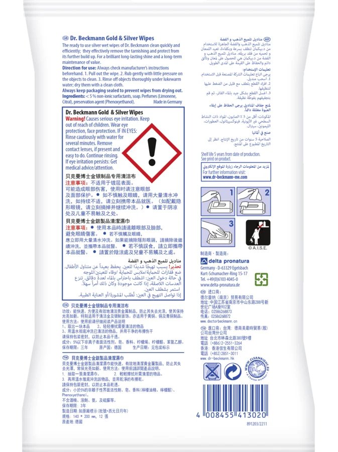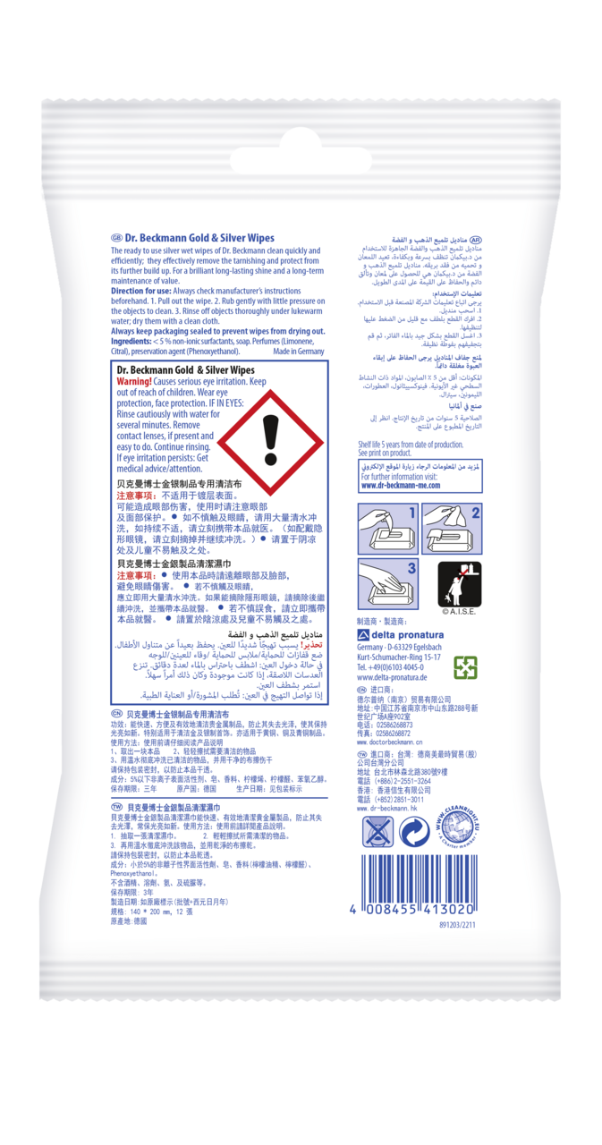 Silver, gold, copper and brass items can lose their shine over time due to tarnishing. This not only affects their appearance, but can also reduce their long-term value. The ready-to-use Gold & Silver Wipes are material-friendly and clean quickly and efficiently, removing tarnish and protecting against future discoloration. Suitable for cutlery and jewellery, for example, they ensure a brilliant, long-lasting shine and help maintain the beauty and value of your items for years to come.