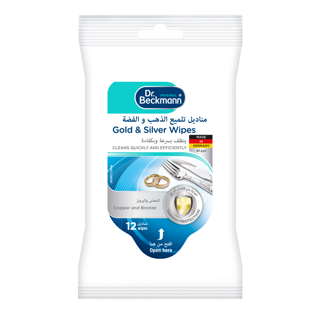 Silver, gold, copper and brass items can lose their shine over time due to tarnishing. This not only affects their appearance, but can also reduce their long-term value. The ready-to-use Gold & Silver Wipes are material-friendly and clean quickly and efficiently, removing tarnish and protecting against future discoloration. Suitable for cutlery and jewellery, for example, they ensure a brilliant, long-lasting shine and help maintain the beauty and value of your items for years to come.
