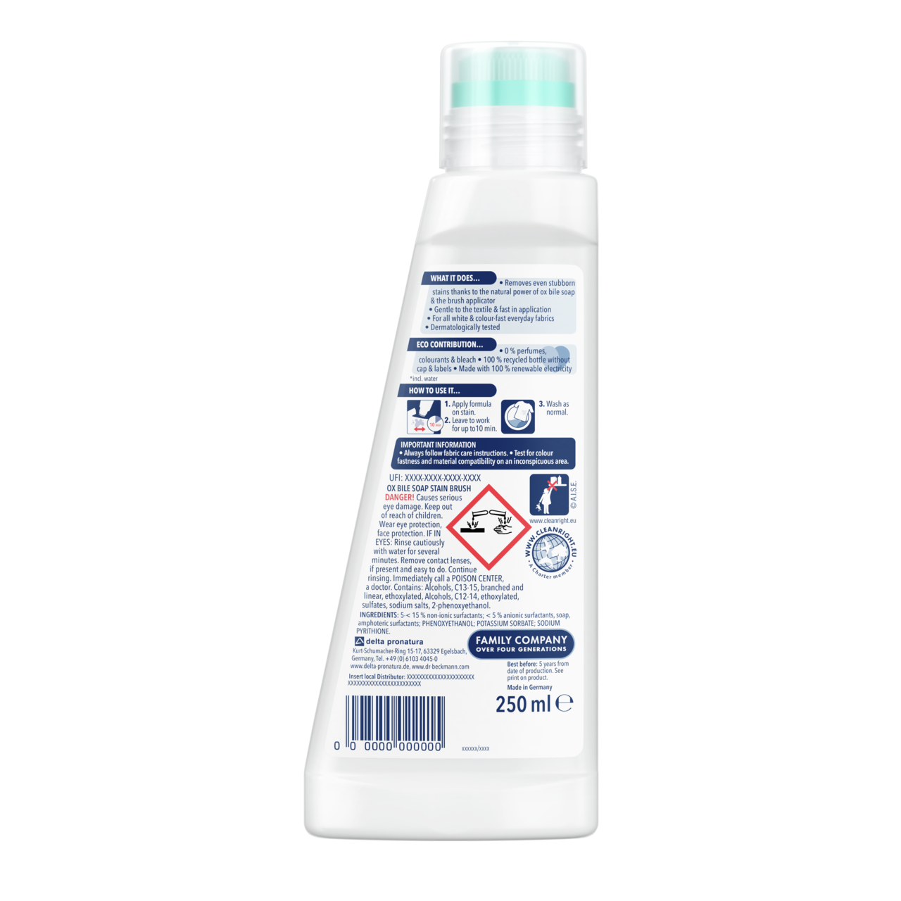 The stain remover formula offers pure power. A special combination of cleaning agents, stain dissolving activators and bio-alcohol remove a variety of even stubborn stains. It is gentle to colours and textiles, ideal for delicates and contains no perfume, no colourant and no bleaches that could cause allergic reactions.Ideal for