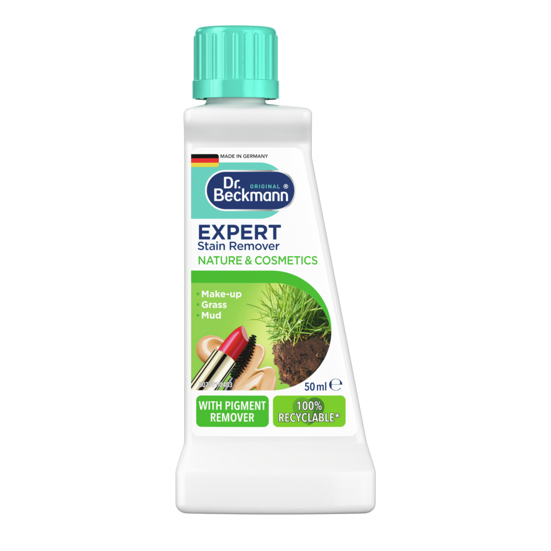 The Dr. Beckmann Expert Stain Remover Nature & Cosmetics was specially developed for stains with particularly high pigment content, for example, make-up, lipstick or grass stains. The formula which is based on a pigment-remover and surfactant-combinations, dissolves stains and removes them in a colour and fabric-friendly manner.