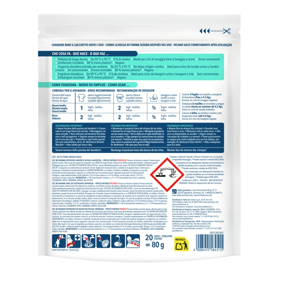Dr. Beckmann Tiras de Detergente Universal - Fresco Intenso