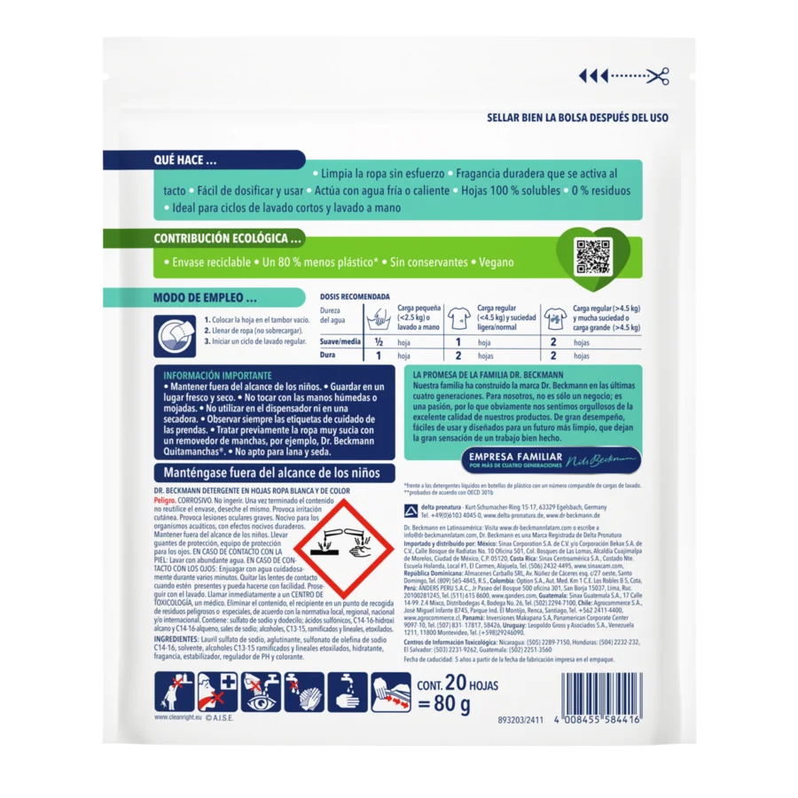 Dr. Beckmann Detergente en hojas ropa blanca y de color