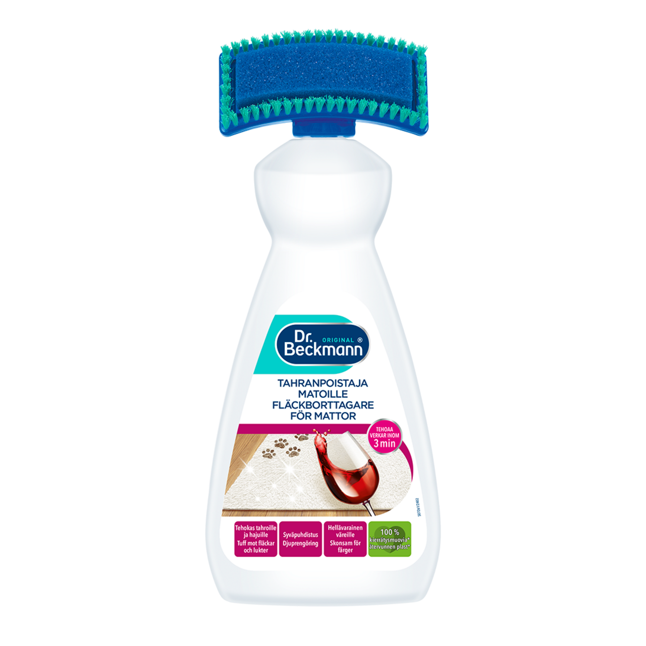 Dr. Beckmannin Tahranpoistoaine matoille perustuu tehokkaaseen oxi-koostumukseen. Se poistaa tuoreet ja vanhat, kuivuneet tahrat ja rumat roiskeet, kuten punaviini, kahvi, menu, kolajuomat, tee, rasva, meikit, muta sekä jopa lemmikkien sotkut, kuten virtsan. Integroidun kaksitoimisen, sienellä ja harjaksilla varustetun harjan ansiosta työ käy helpommin kuin koskaan ennen, joten voit käyttää sitä jopa vilkkaasti kuljettuihin kohteisiin, kuten käytävä-, ovi- ja porrasmattoihin. Ei väliä, mistä sotkusta on kyse, harja pääsee syvälle kuituihin ja puhdistaa mattosi perusteellisesti – syväpuhdistetut pinnat näyttävät kuin uusilta. Tuote ei sisällä kloorivalkaisuaineita ja se on dermatologisesti testattu.