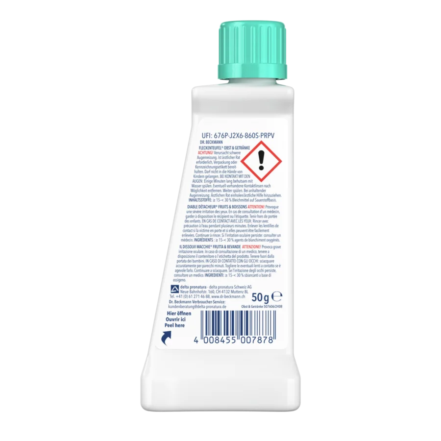 Dr. Beckmann Diable Détacheur Fruits et Boissons est composé d'une formule à l‘oxygène actif qui enlève les taches en les décolorant, tout en respectant les couleurs et le tissu. Les taches de café, de vin rouge et bien d'autres taches sont éliminées efficacement sans attaquer le textile.