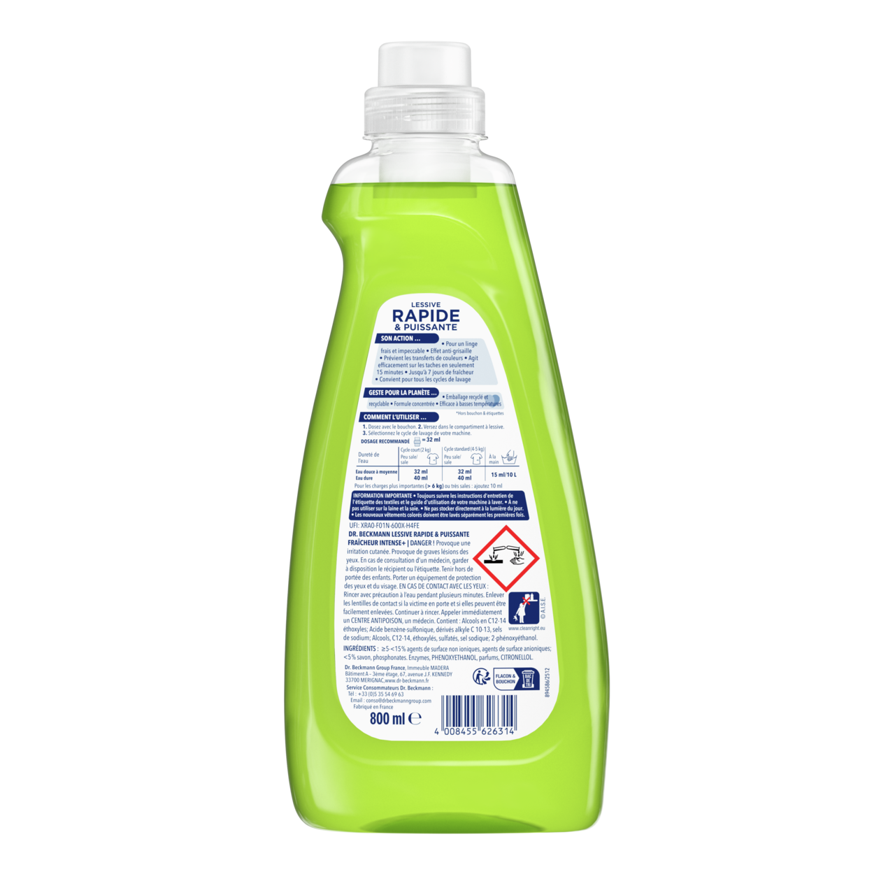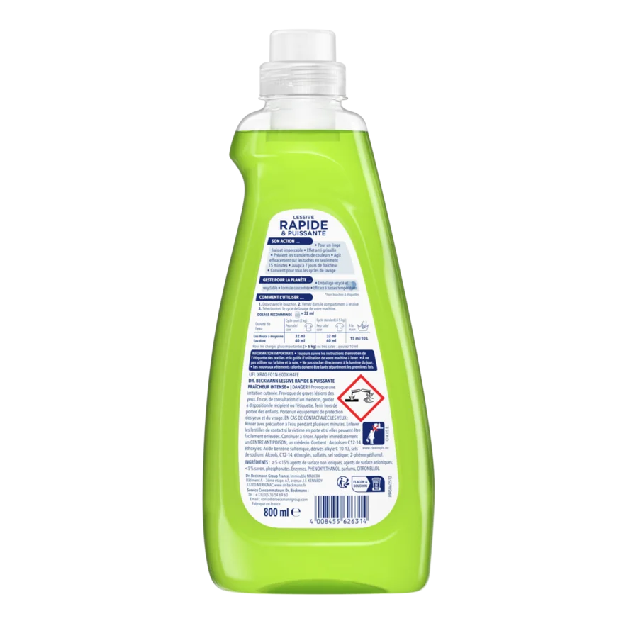 Dr. Beckmann Lessive Rapide & Puissante Fraîcheur Intense est conçu pour fonctionner en lavage rapide, ce qui contribue à réduire la consommation d'eau et d'électricité, et en fait un choix intelligent et durable pour votre routine quotidienne. Dr. Beckmann Lessive Rapide & Puissante Fraîcheur Intense est présenté dans un flacon entièrement recyclable, fabriqué à partir de plastique 100 % recyclé, ce qui contribue à réduire les déchets plastiques.