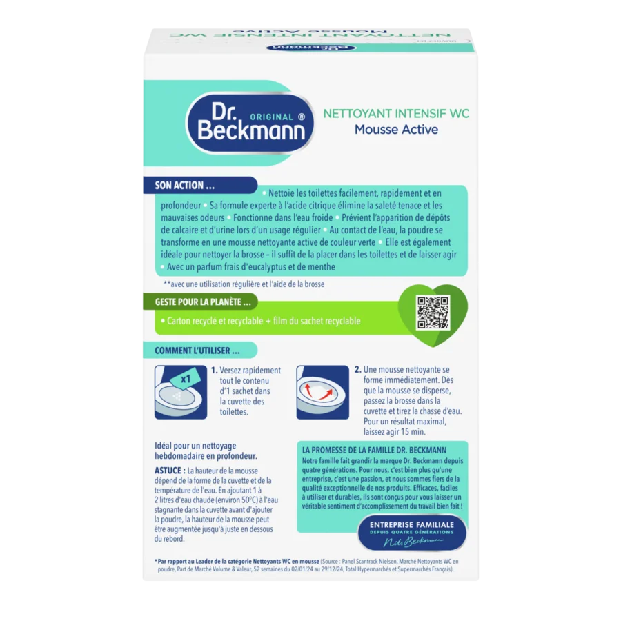 Le Dr. Beckmann Nettoyant Intensif WC Mousse Active est généralement sans danger pour l'environnement et la santé s'il est utilisé conformément aux instructions. La formule est conçue pour nettoyer efficacement tout en minimisant l'impact sur l'environnement. Cependant, il est important de suivre les instructions et les précautions indiquées sur l'étiquette pour garantir une utilisation sûre.