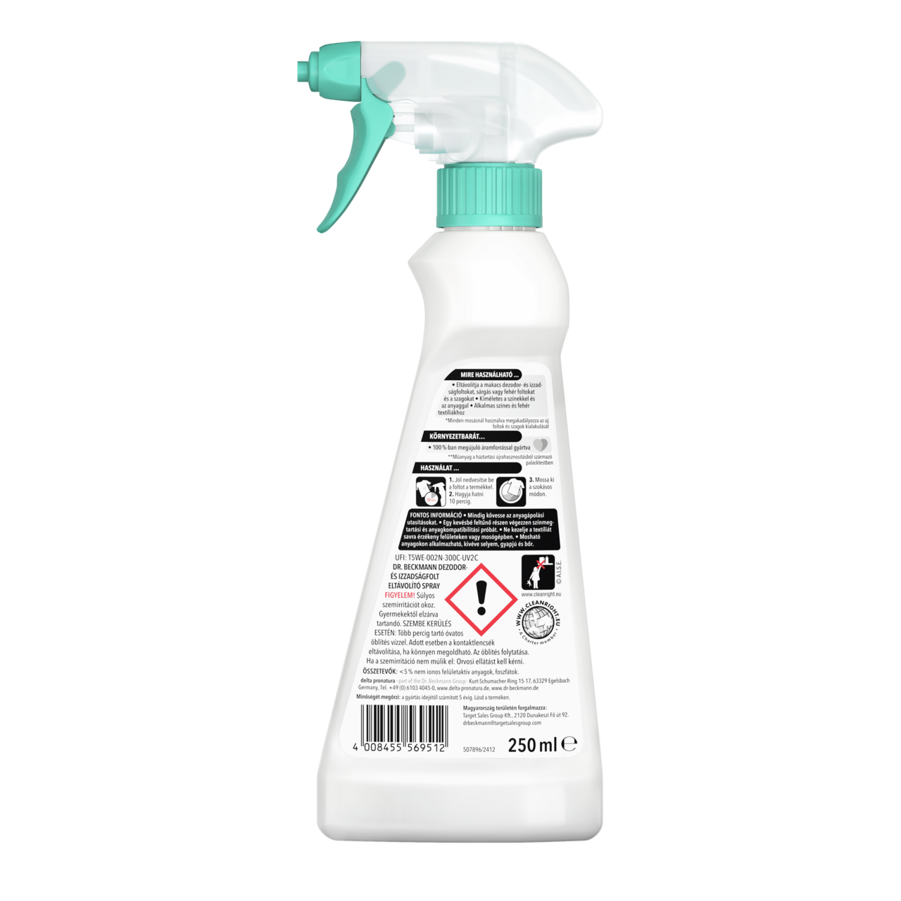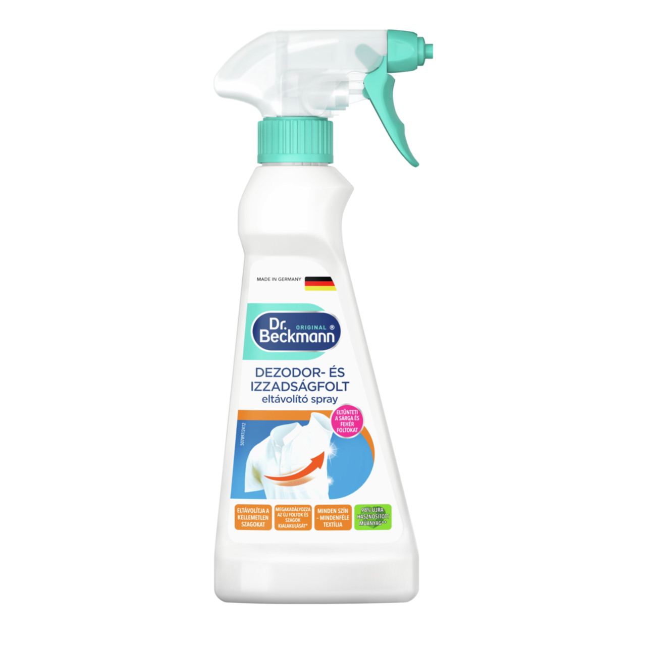 A Dr. Beckmann Dezodor- és izzadságfolt eltávolitó spray aktív oxigént tartalmaz, amely mélyen behatol a szövet szálaiba, hogy eltávolítsa a makacs foltokat és szagokat.
