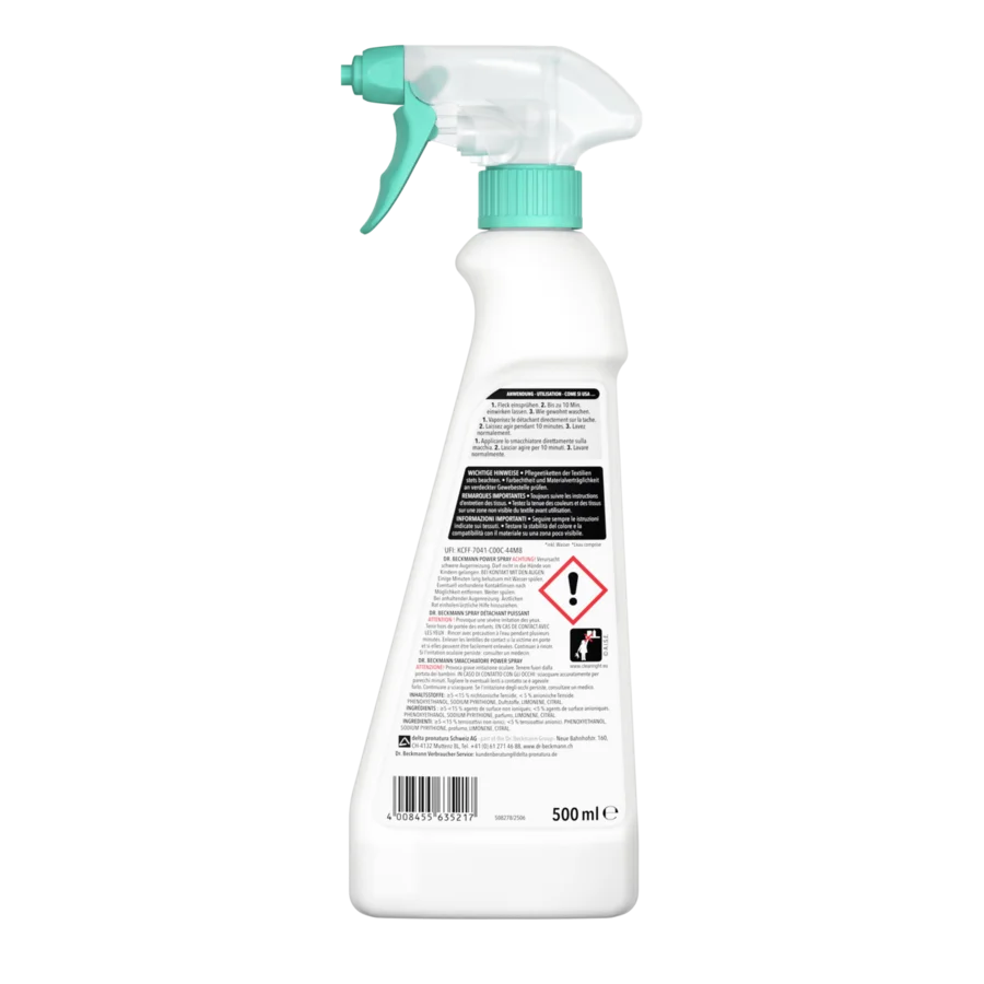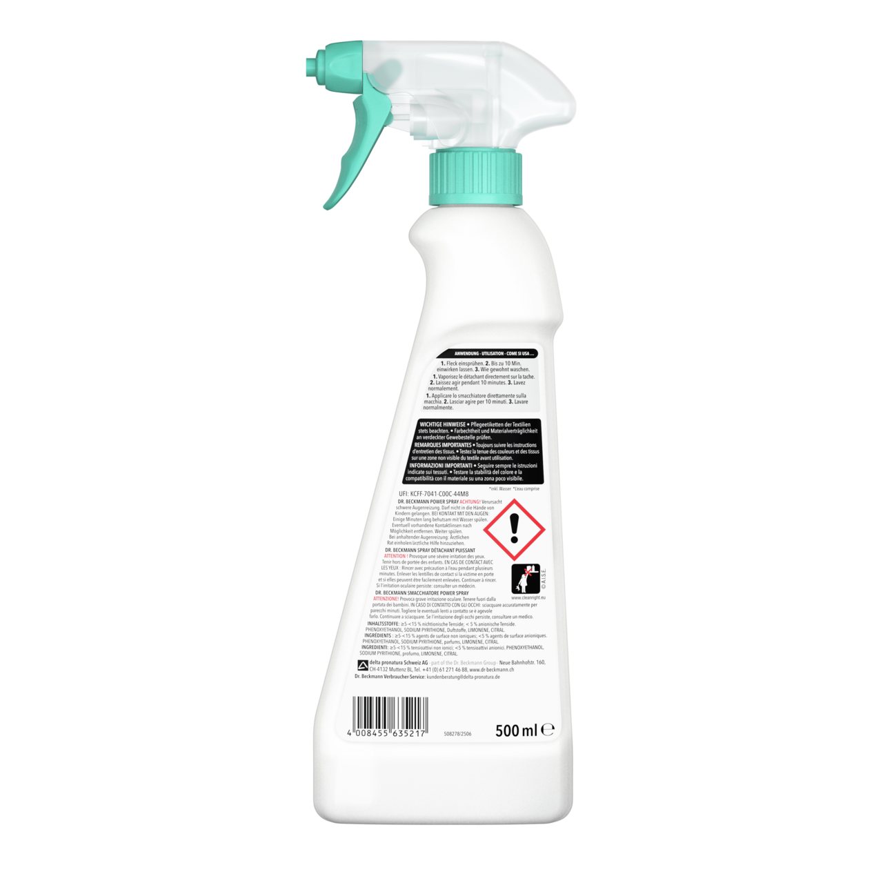 Dr. Beckmann {9211} rimuove rapidamente ed efficacemente macchie e sporco di vario tipo. Elimina oltre 100 tipi diversi di macchie, come olio, salse, cioccolato, trucco, alimenti per bambini, vino rosso, caffè, frutta e verdura e molte altre. È adatto anche per tessuti delicati. Rimuove completamente anche le macchie su lana e seta.