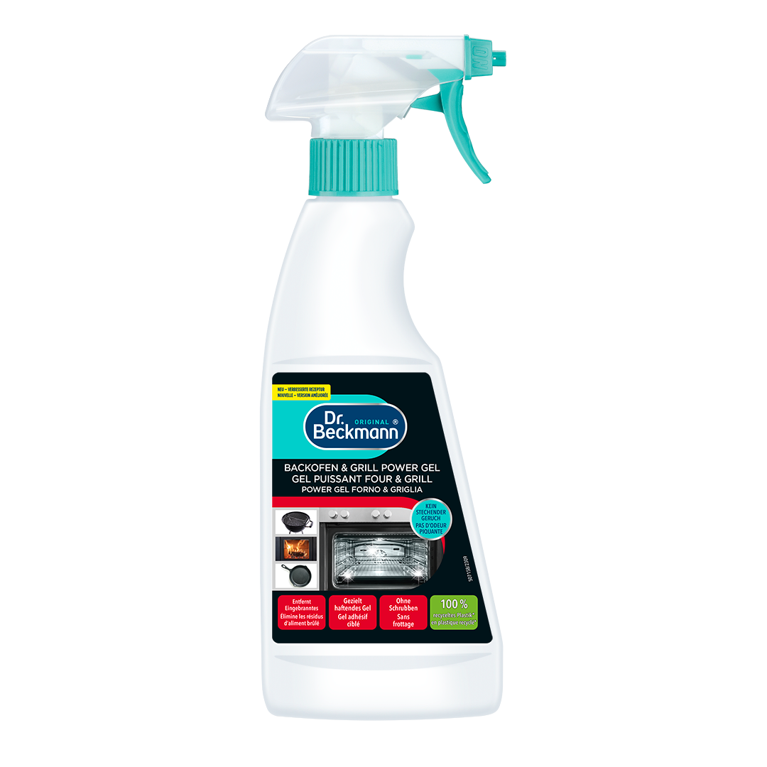 Questo detersivo per forni con bicarbonato di sodio rimuove le incrostazioni più ostinate, le macchie di bruciato e le macchie di grasso.La formula in gel, che aderisce anche alle superfici verticali, penetra negli strati più bassi anche delle incrostazioni più spesse ed è delicata sul materiale. Il detersivo per forno di Dr. Beckmann è adatto anche per griglie, padelle e vetri dei caminetti. È pulito dal punto di vista alimentare, non emette vapori aggressivi o nocivi e ha un gradevole profumo di pompelmo.