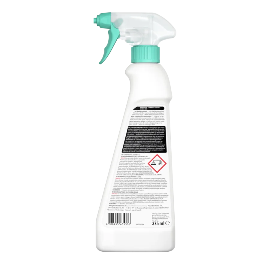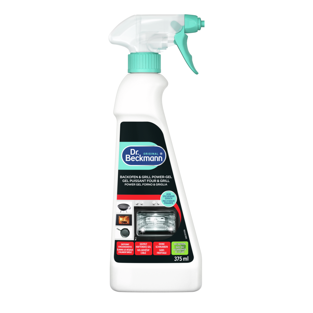 Power gel forno & griglia con bicarbonato di sodio rimuove incrostazioni ostinate, macchie bruciate e macchie di grasso. La formula in gel, che aderisce anche alle superfici verticali, penetra negli strati più bassi anche delle incrostazioni più spesse ed è delicata sul materiale. Power gel forno & griglia di Dr. Beckmann è adatto anche per griglie, padelle e vetri di caminetti. È pulito dal punto di vista alimentare, non emette vapori aggressivi o nocivi e ha un gradevole profumo di pompelmo.