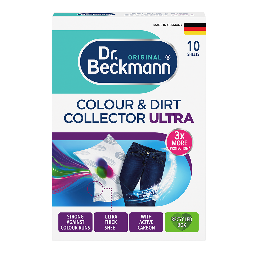 ドクターベックマン カラー&ダートコレクターウルトラは磁石のように働き、水中の遊離染料を極めて高濃度で吸着します。標準的な色移り防止シートと比べ、色移りや色褪せを3倍効果的に防止します。この特殊な厚手シート設計により、混色洗濯が可能です。色物、濃色、白物を簡単に一緒に洗えます。これにより、洗濯物の仕分けが減り、洗濯機に詰め込む回数も減るため、時間、エネルギー、資源を節約できます。洗濯を繰り返しても、新品同様の美しさをキープ。