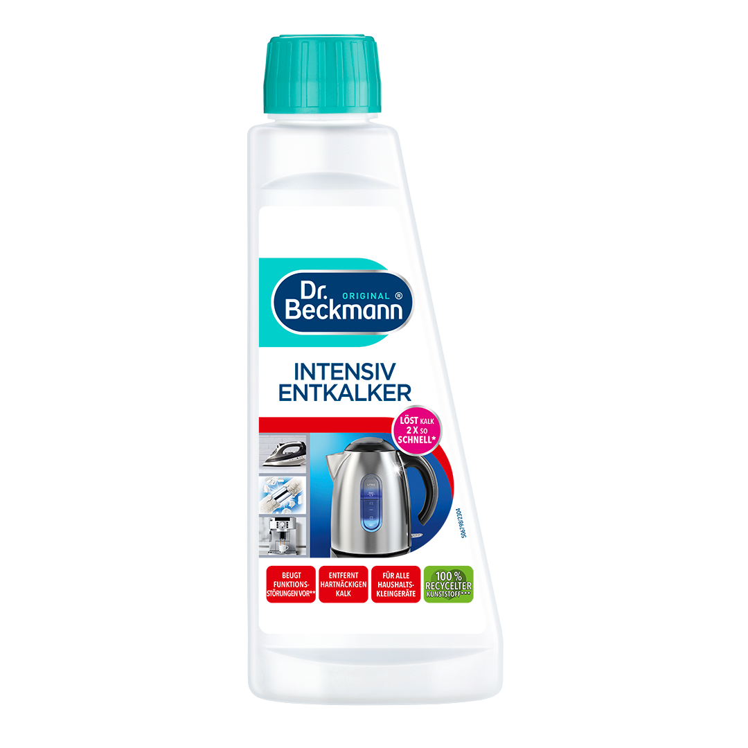 Kalkių nuosėdos ne tik atrodo neestetiškai, bet ir gali lemti prastesnį prietaiso veikimą bei didesnes energijos sąnaudas. Įrodyta, kad „Dr. Beckmann“ Intensyvus kalkių valiklis formulė šalina kalkes geriau nei citrinos rūgštis, užtikrindama greitą ir galingą poveikį. Taip galima nukalkinti ne tik virdulius, bet ir, pavyzdžiui, „Senseo“ kavos aparatus, apsaugant juos nuo gedimų. Reguliariai naudojamas Intensyvus kalkių valiklis gali padėti išvengti veikimo sutrikimų ir galios sumažėjimo.