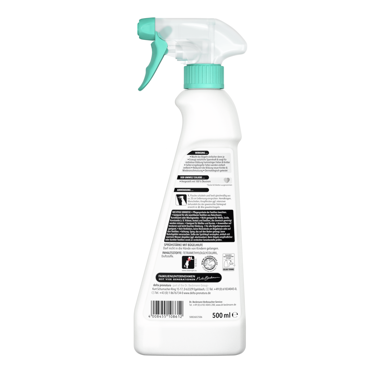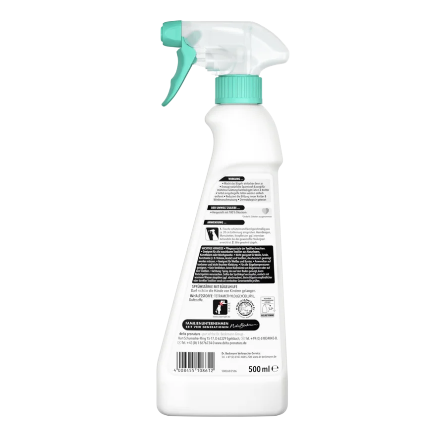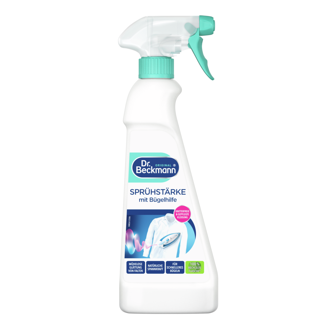 „Dr. Beckmann“ Purškiamas krakmolas lengvam lyginimui apjungia du veiksmingus procesus į vieną, todėl lyginimas tampa lengvesnis nei bet kada anksčiau. Inovatyvi formulė suteikia audiniui natūralų standumą ir tuo pačiu užtikrina lengvą įsisenėjusių raukšlių bei klosčių išlyginimą. Galite pašalinti net įsilyginusias raukšles, o pluošto išlyginimas padeda išvengti naujų klosčių susidarymo bei atstumia purvą. Suteikia jūsų tekstilei tobulą, kontroliuojamą formą ir lygią išvaizdą, užtikrinant tvarkingą įvaizdį ir patogumo pojūtį.