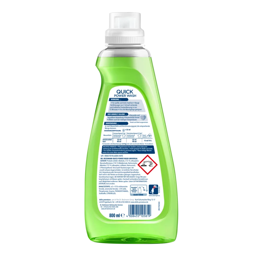 „Dr. Beckmann Quick Wash“ yra tobula greičio, efektyvumo ir patogumo dermė – nes mūsų skubančiame pasaulyje švarūs skalbiniai neturėtų jūsų stabdyti.
