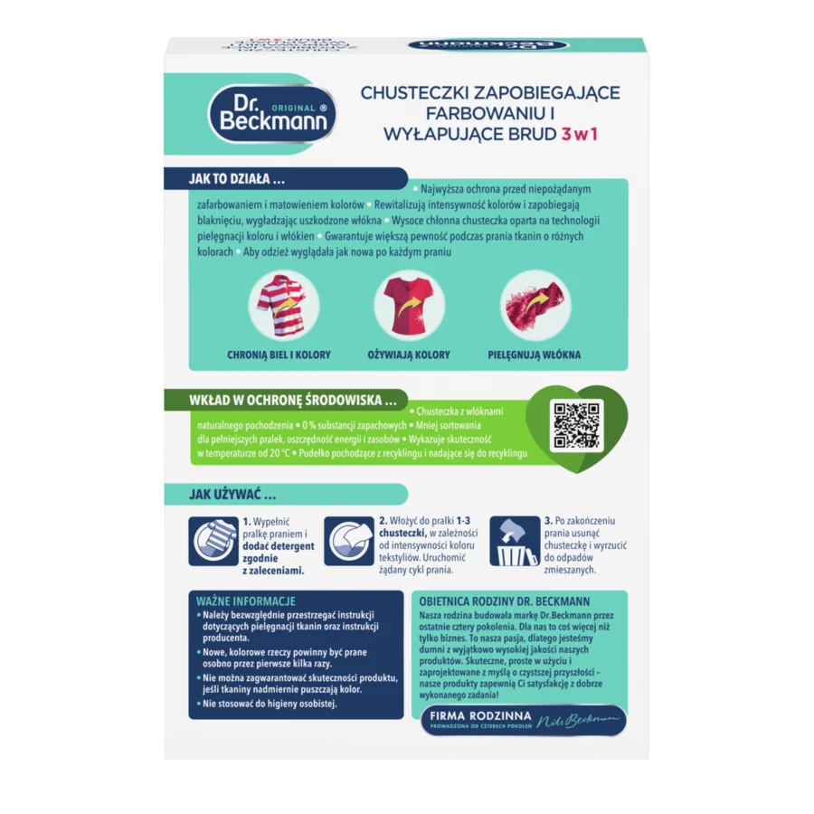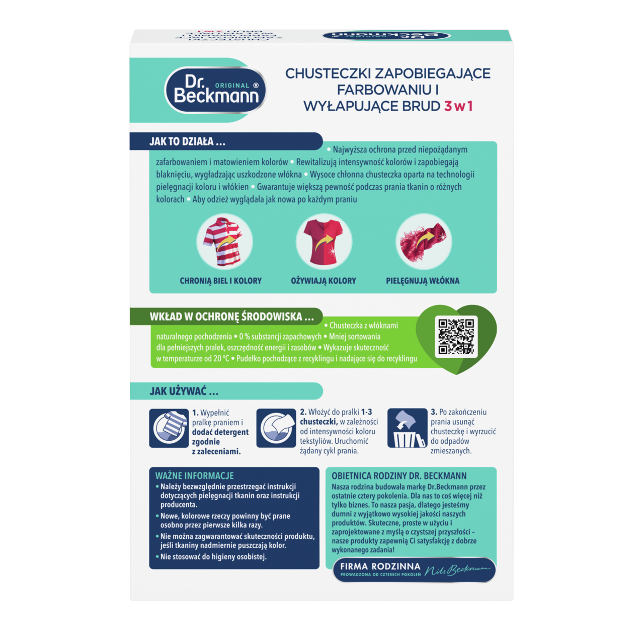 Dr. Beckmann Chusteczki zapobiegające farbowaniu i wyłapujące brud 3 w 1