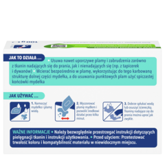 - Usuwa nawet uporczywe plamy i brud zarówno z tkanin nadających się jak i nie nadających się do prania (np. tapicerki i dywanów) dzięki wysoce skutecznej formule rozpuszczającej plamy w połączeniu z myciem ręcznym
