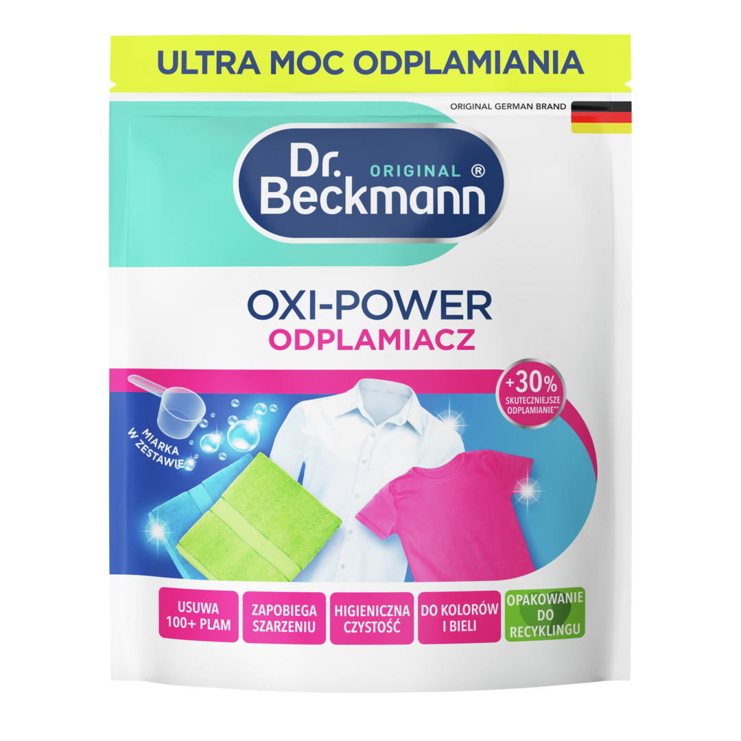 Możesz używać soli do odplamiania OXI ACTIVE Dr. Beckmann przy każdym praniu.