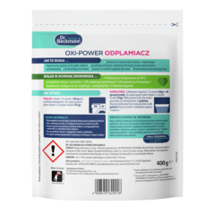 OXI ACTIVE Sól do odplamiania Dr. Beckmann usuwa ponad 100 różnych plam, w tym plamy kolorowe, zdatne do wybielania (np. z kawy, herbaty, czerwonego wina, owoców) oraz tłuste.
