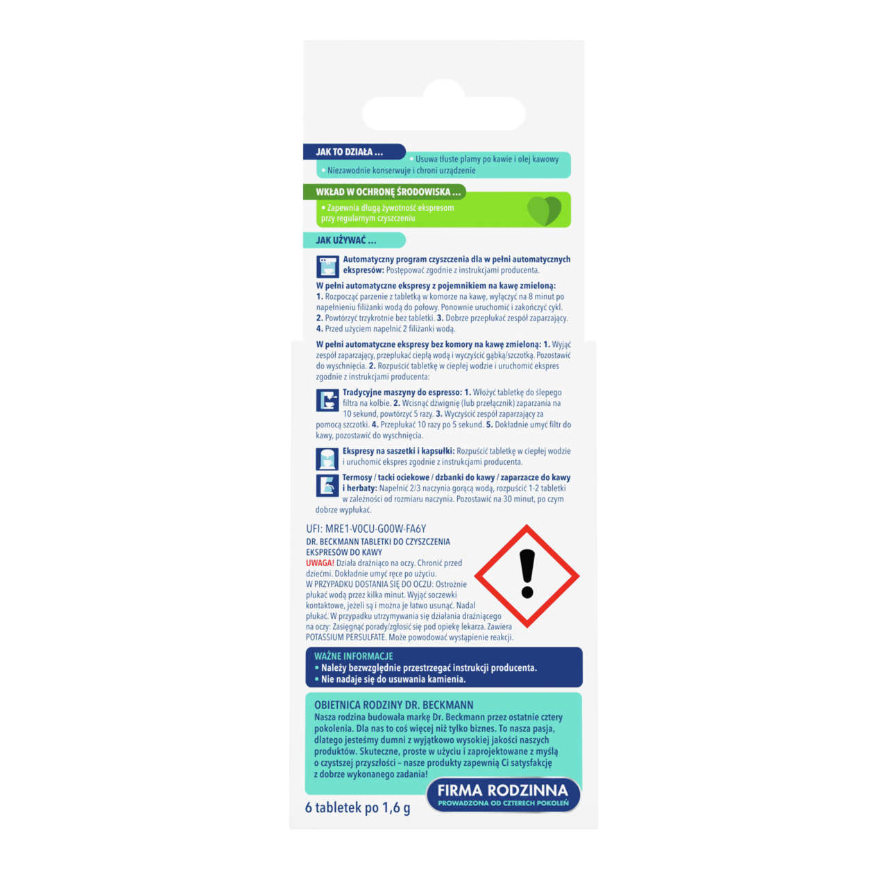 Aby cieszyć się doskonałą kawą i przedłużyć żywotność ekspresu, ważne jest regularne czyszczenie urządzenia. Dzieje się tak, ponieważ przy każdym użyciu ekspresu do kawy osadzają się w nim tłuszcze i oleje, które mogą negatywnie wpływać na działanie urządzenia. Dr. Beckmann Tabletki do czyszczenia ekspresów do kawy usuwa wszelkie pozostałości tłuszczu z kawy i niezawodnie chroni ekspres do kawy podczas tego procesu.