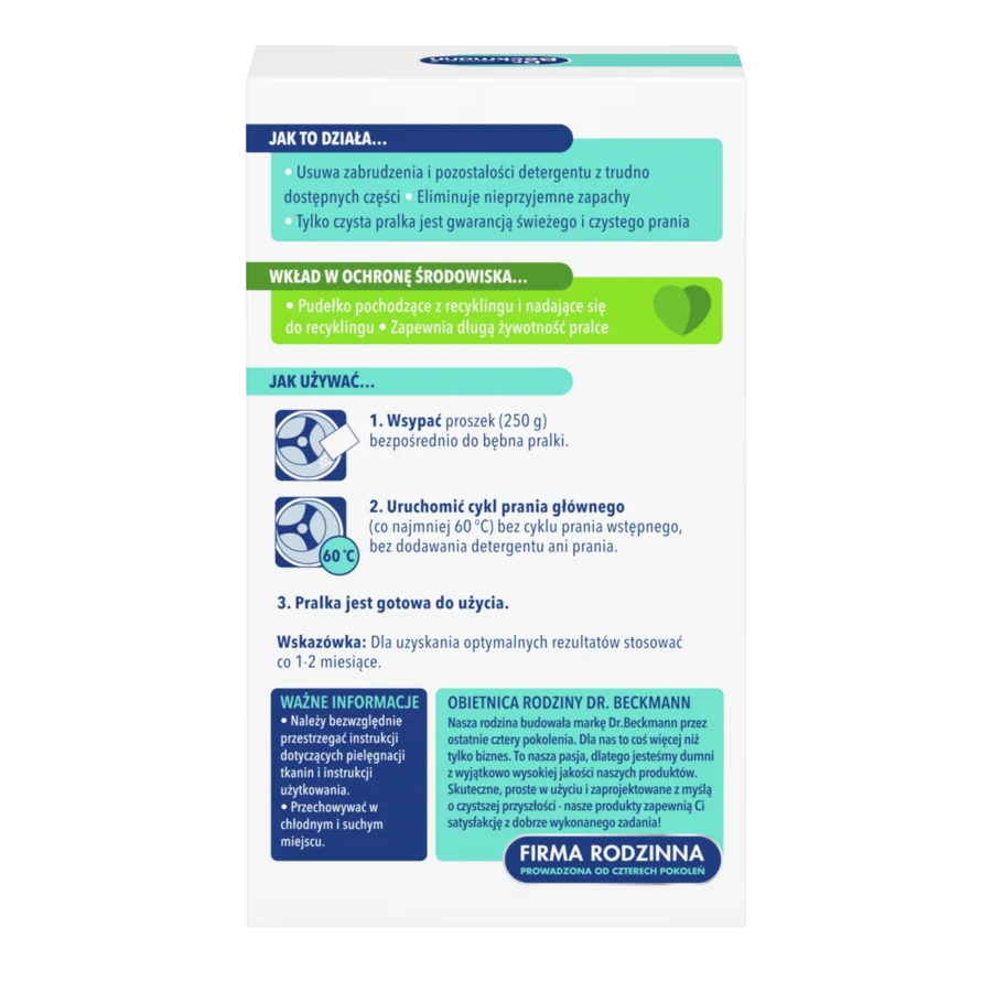 Oczywiście można również użyć cyklu prania z wyższą temperaturą przy użyciu środka do czyszczenia pralek Dr. Beckmann Deep Clean. Im wyższa temperatura podczas czyszczenia pralki, tym lepiej usuwane są pozostałości i osady.
