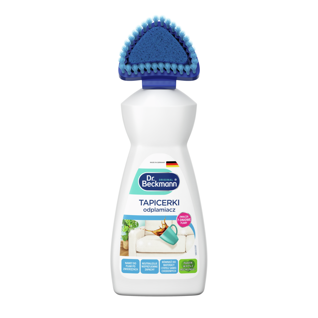 Dr. Beckmann Tapicerki odplamiacz zapewnia łatwiejsze i szybsze użytkowanie niż tradycyjne produkty dzięki zintegrowanej miękkiej trójkątnej szczoteczce 2 w 1: gąbka w środku równomiernie rozprowadza środek do usuwania plam, aktywując formułę Oxi-Power podczas gdy włosie delikatnie wnika w tkaninę. Dzięki trójkątnemu kształtowi dotrzesz do każdego narożnika i innych trudno dostępnych miejsc.