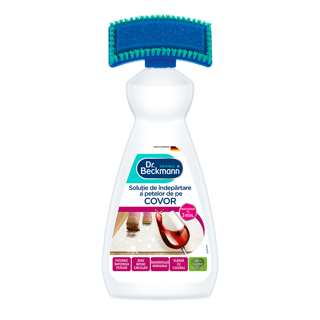 Formula puternică de curățare oxi a soluției de curățare a covoarelor Dr. Beckmann Carpet Stain Remover elimină petele proaspete, petele vechi uscate și petele inestetice precum vin roșu, cafea, suc, cola, ceai, grăsime, machiaj, noroi și murdăria adâncă. Datorită periei integrate 2in1 cu burete și peri, munca dvs. este mai ușoară ca niciodată, astfel încât o puteți utiliza chiar și pe zonele cu trafic intens, cum ar fi holurile, preșurile și scările. Indiferent de murdărie, peria pătrunde adânc în fibre și vă curăță covorul în profunzime - pentru suprafețe cu adevărat curățate în profunzime, care arată ca noi. Formula noastră nu conține înălbitor cu clor și este testată dermatologic.
