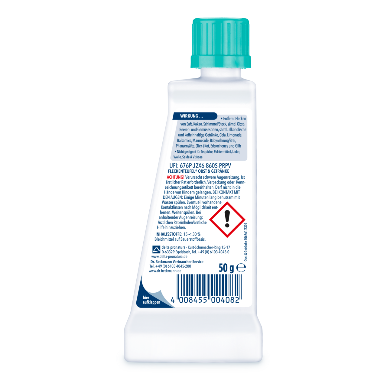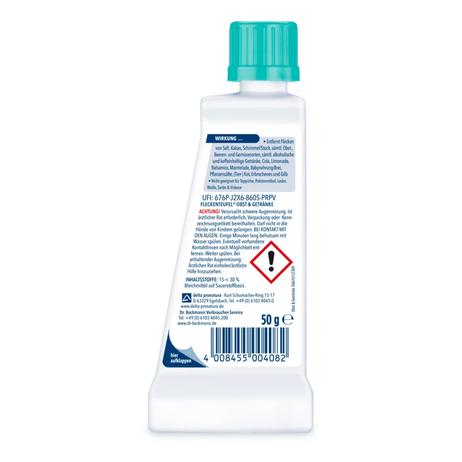 Dr. Beckmann Expert za fleke voće & povrće deluje na bazi formule sa aktivnim kiseonikom koja izbeljuje i tako uklanja mrlju na način koji je bezbedan za boje i tkanine. Mrlje od kafe, crvenog vina i mnoge druge mrlje mogu se efikasno ukloniti bez oštećenja tkanine.