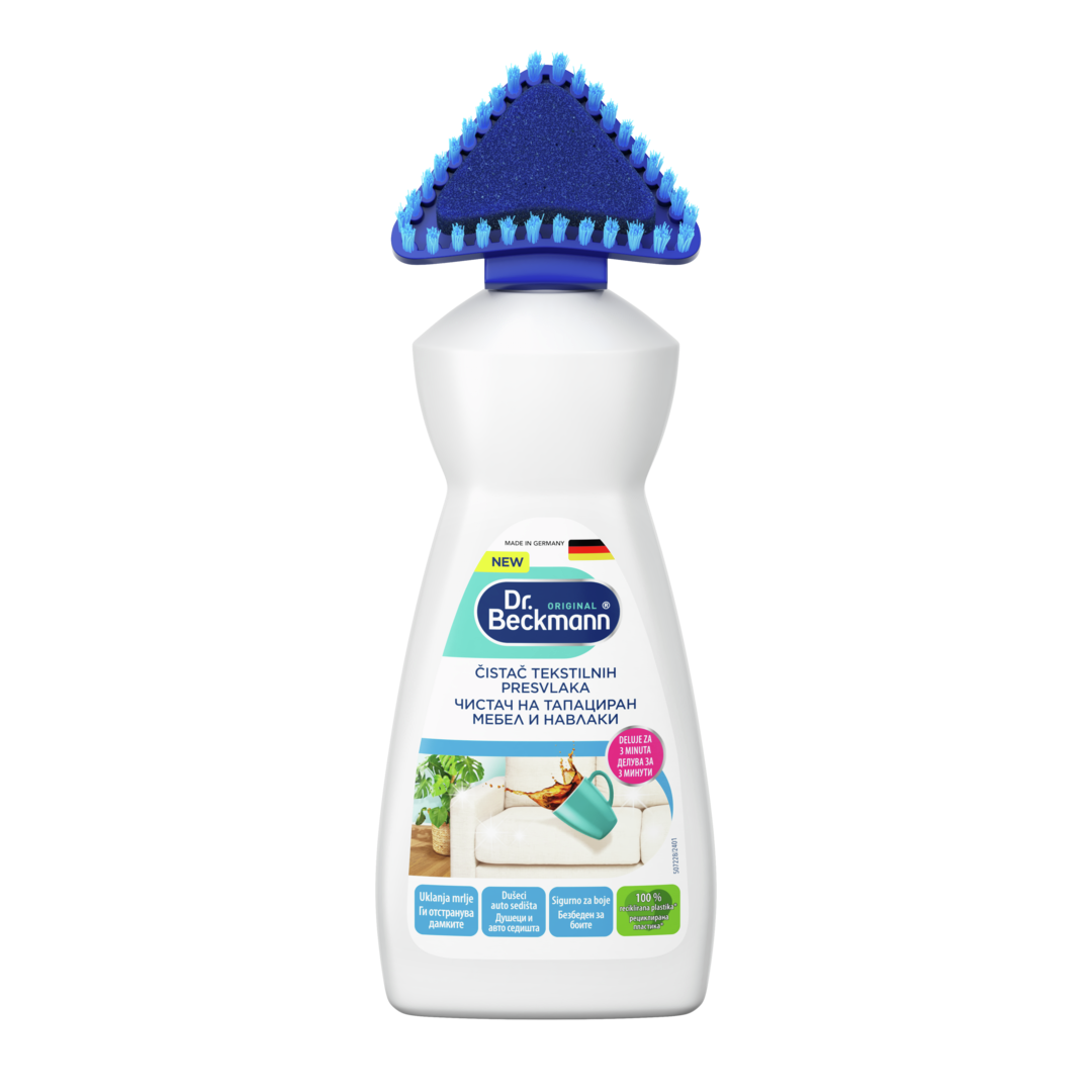 Dr. Beckmann Čistač tekstilnih presvlaka omogućava jednostavniju i bržu upotrebu od običnih proizvoda zahvaljujući ugrađenoj 2u1 mekanoj trouglastoj četki: sunđer u sredini ravnomerno raspoređuje sredstvo za uklanjanje fleka, aktivira oxi-snagu, dok dlačice nežno utrljavaju proizvod u tkaninu. Zahvaljujući trouglastom obliku, možete dosegnuti svaki ugao i teško dostupna mesta.