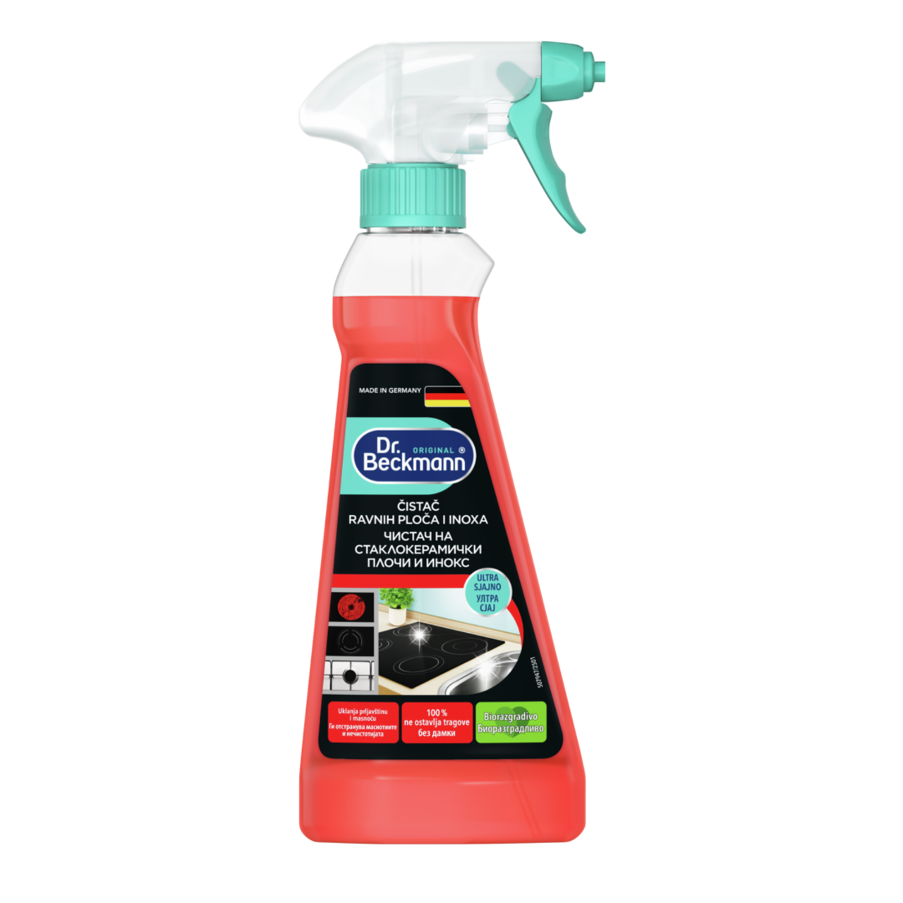 Čistač ravnih ploča i inoxa je posebno razvijen za sjajno čišćenje bez tragova svih vrsta kuhinjskih ploča i površina od nerđajućeg čelika. Posebni surfaktanti otapaju masnoću i prljavštinu, a sastojci za sjaj i negu ostavljaju dugotrajnu blistavost. Savršeno je za brzo i jednostavno pospremanje, pruža sjaj bez tragova u poređenju s čišćenjem npr. deterdžentima za pranje sudova. Pogodno za sve ploče za kuvanje (staklokeramičke, indukcijske i plinske) i površine od nerđajućeg čelika